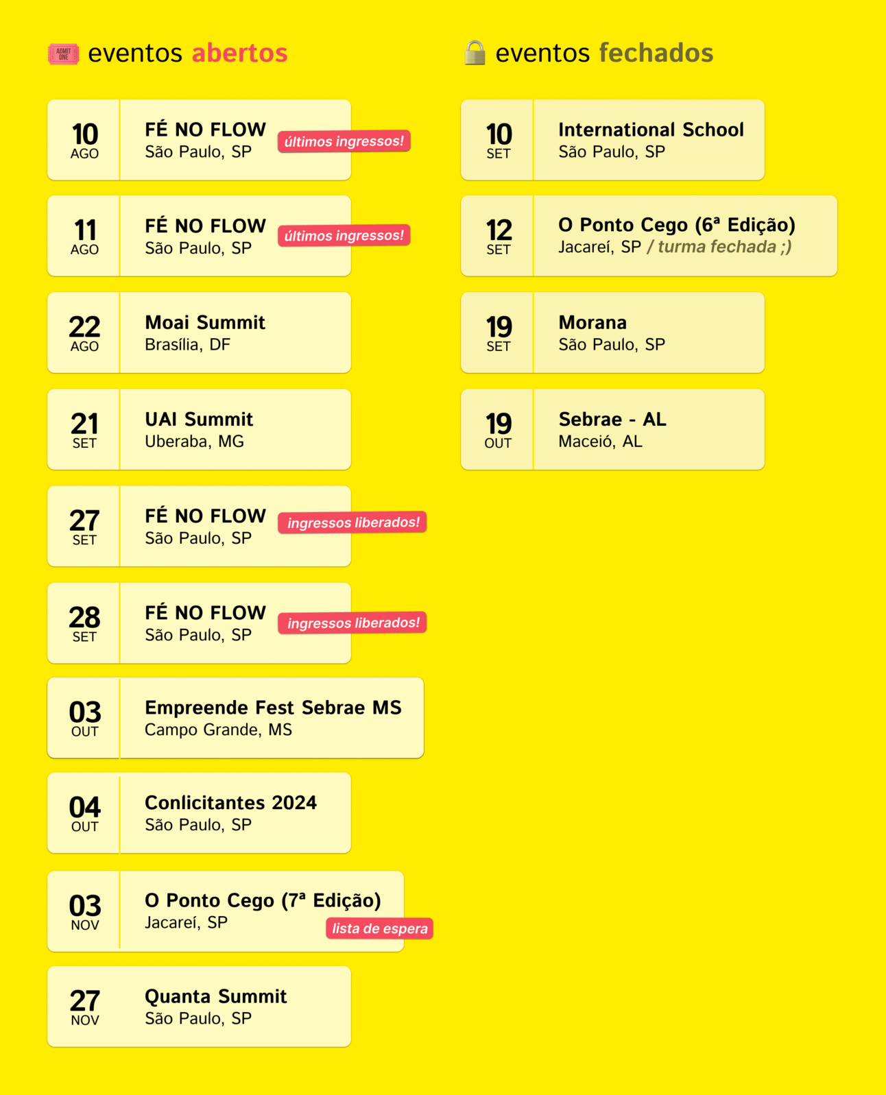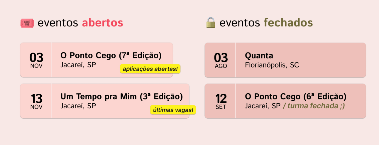 Para saber mais detalhes sobre esses eventos, acesse meu site aqui.