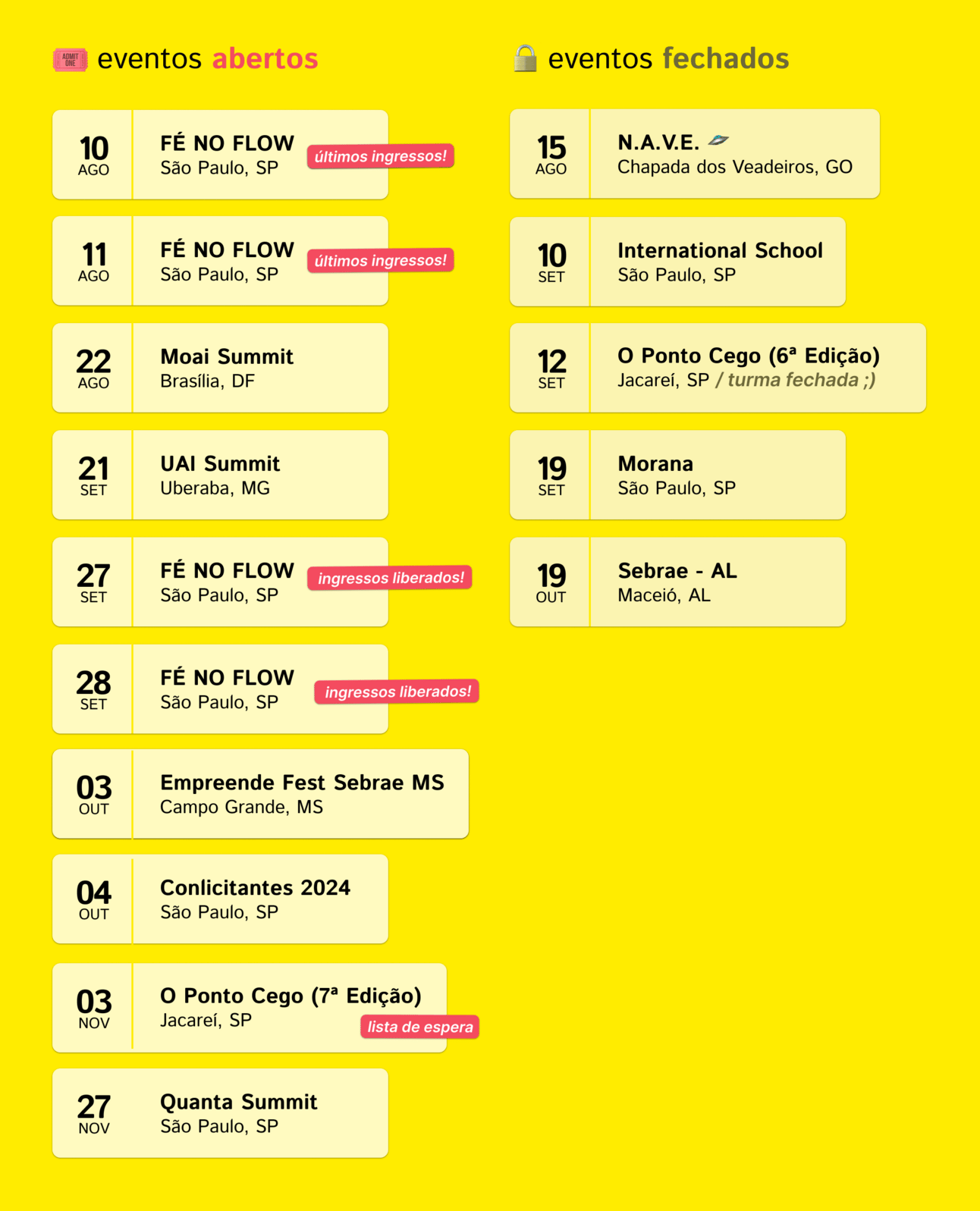 Para saber mais detalhes sobre esses eventos, acesse meu site aqui.
